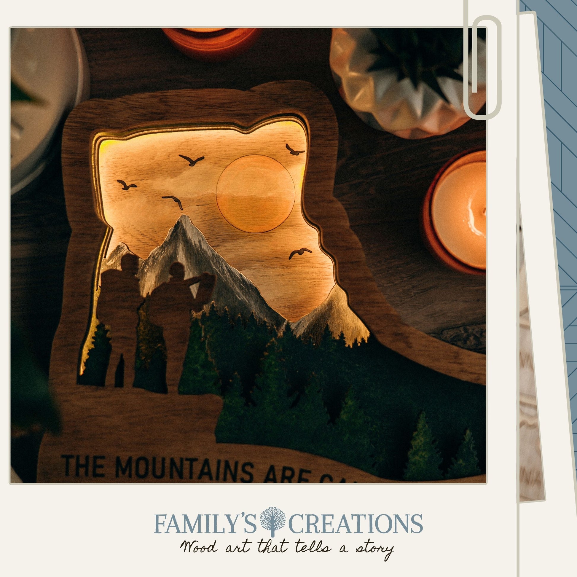 Whether it adds a peaceful glow to your entryway, lights up a cozy nook, or serves as a meaningful gift for the hiker at heart, this piece is a tribute to the paths that shape us — and the call of the wild that always brings us home.
