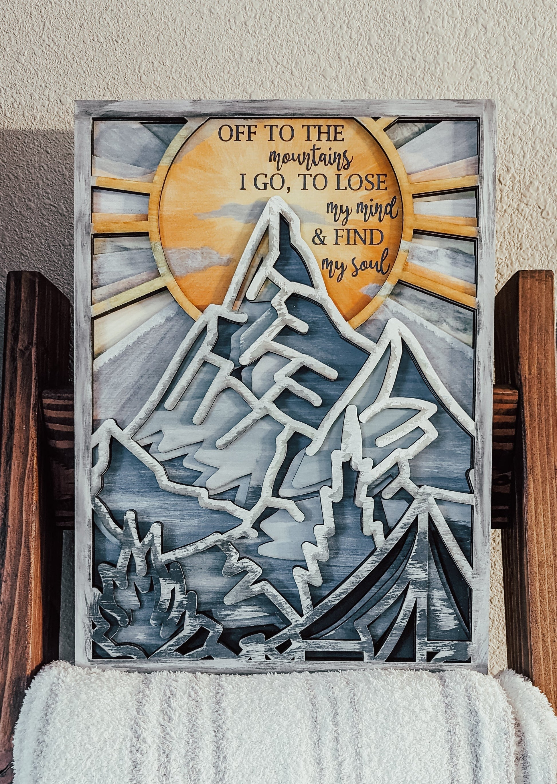 "Off To The Mountains I Go" Scene Dimensions & Details: 4 Layers 14.5" wide x 20" tall