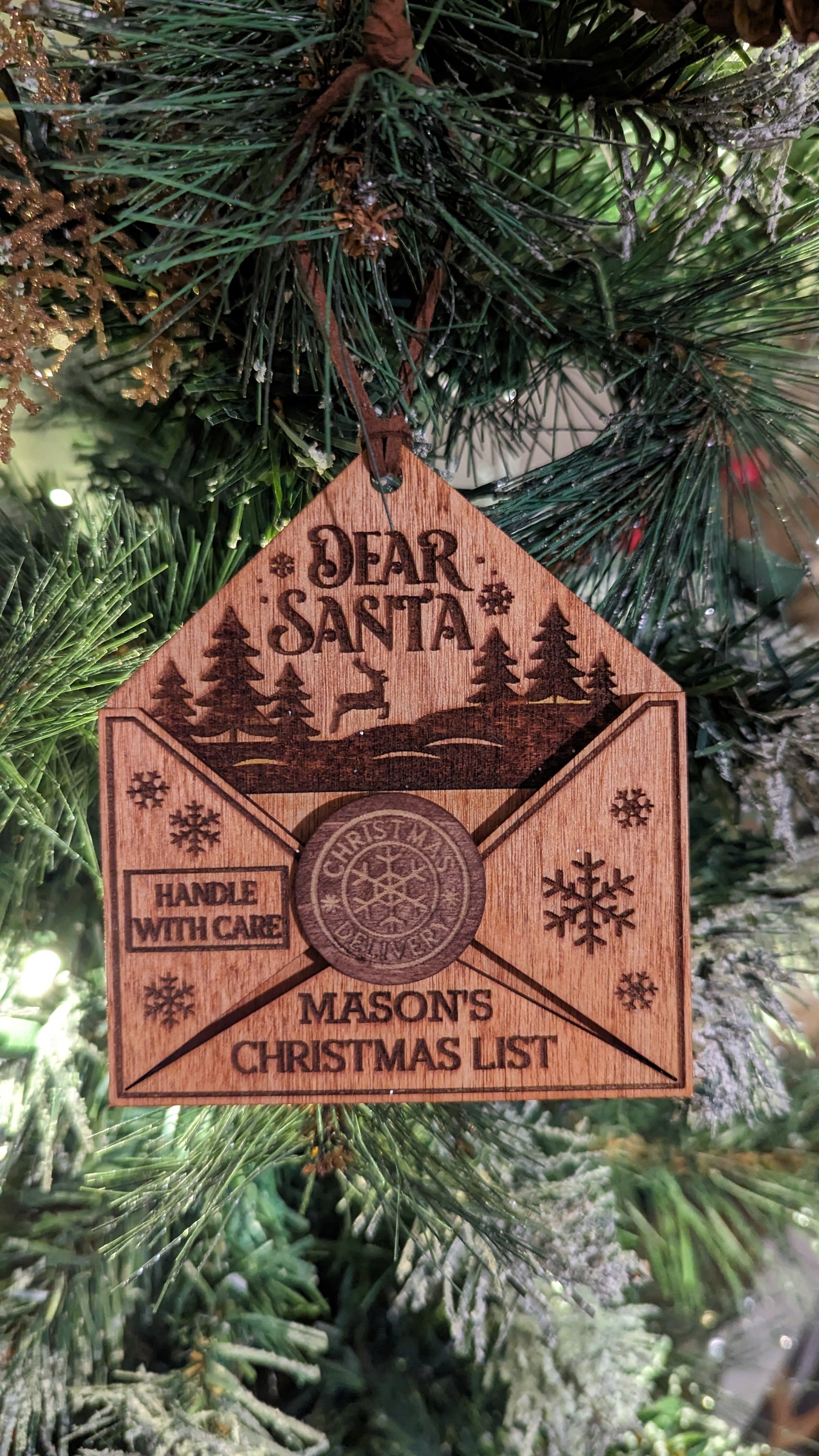 Wouldn't it be nice to have a -go to- place to find your children's Christmas wishes or special letters to Santa? This ornament is the ideal letter holder for all of those big hopes and dreams. Add name personalization, design choice, and stain color in the "Order special instructions" section near the bottom of the "Your cart" page.